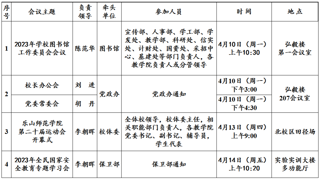 第9周(4月10日—4月16日)主要会议安排