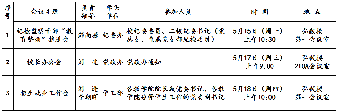 第14周(5月15日—5月21日)主要会议安排