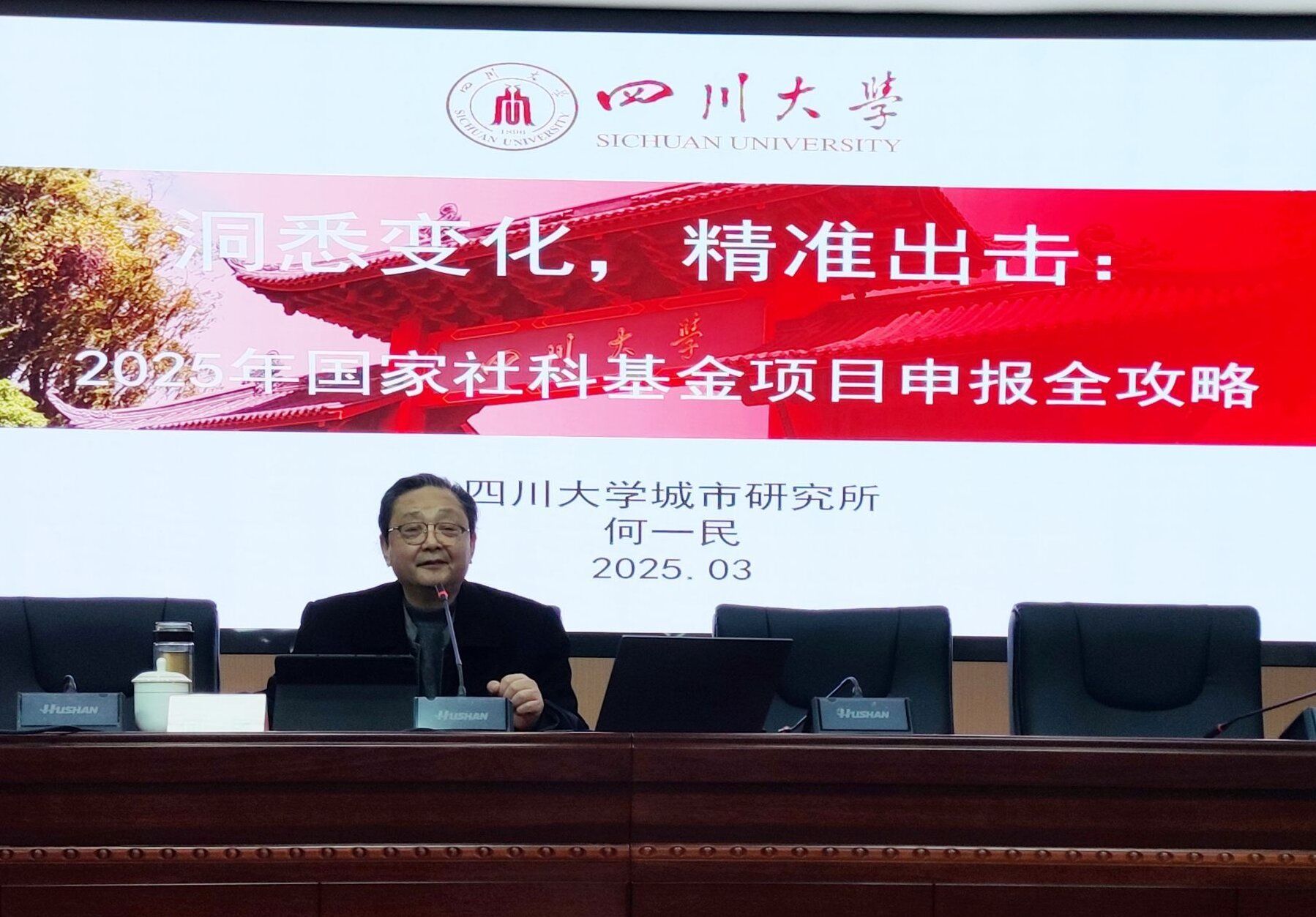 为切实做好2025年度国家社科基金申报工作,提高我校国家级项目申报质量,2025年3月12日上午,科研处特邀四川大学城市研究所所长、国家社科基金会议评审专家、四川省学术与技术带头人何一民教授到校开展专题讲座——洞悉变化,精准出击:2025年国家社科基金项目申报全攻略。相关教学院、研究院教师在弘毅楼第三会议室参加会议,会议由科研处副处长向珂主持。