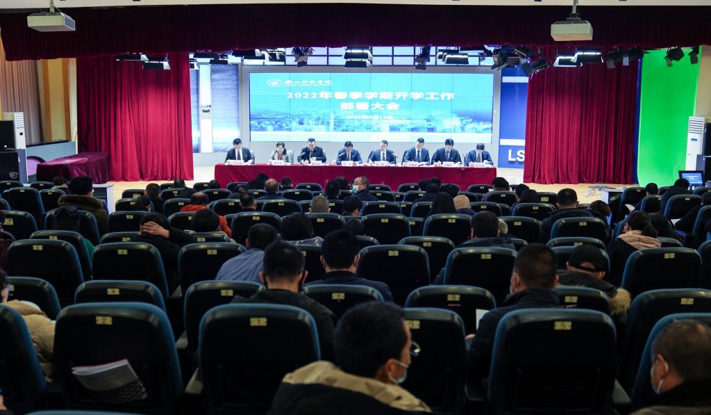 本网讯(文、图/孟繁增)一元复始,万象更新。2月18日,开学第一天,学校召开2022年春季开学工作部署大会,总结2021年工作,重点部署2022年工作,旨在进一步统一思想、明确任务、振奋精神,以更加积极主动的姿态、更加奋发有为的状态、更加务实高效的作风,齐心协力完成好新一年的各项工作任务。全体校领导和学校处级以上干部参加会议。会议由学校党委书记胡丹主持。