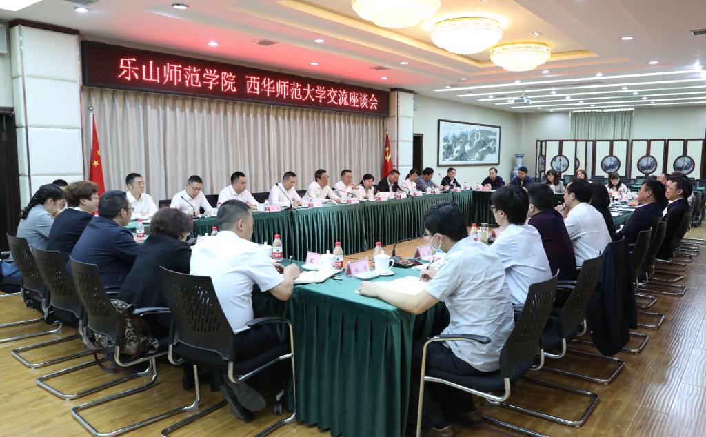 胡丹对西华师大的热情接待表示衷心的感谢,他首先肯定了西华师大在立德树人、服务基础教育和学科建设等方面所作出的成绩,高度认可西华师大在校际合作和开放办学方面的做法与经验。胡丹介绍了乐山师院在学校发展、人才队伍、师资力量、科研成果等方面的基本情况。他指出,西华师大和乐山师院有着类似的发展历史,是同根同源的亲兄弟,来到西华师大就有了“回家”的感觉。西华师大始终坚持立教报国、育才造士,矢志不渝为民族复兴和地方建设服务,坚持“1359”战略,走出了特色办学的发展之路,所取得的成果实属不易。胡丹指出,我校将借鉴西华师大好的做法和成功经验,希望西华师大在制度建设、师资队伍、本科教育、科研和社会服务、硕士研究生培养等方面,给予乐山师范学院更多指导和帮助,希望双方进行深度广泛地交流与合作,促进两校办学水平与人才培养质量不断提升。