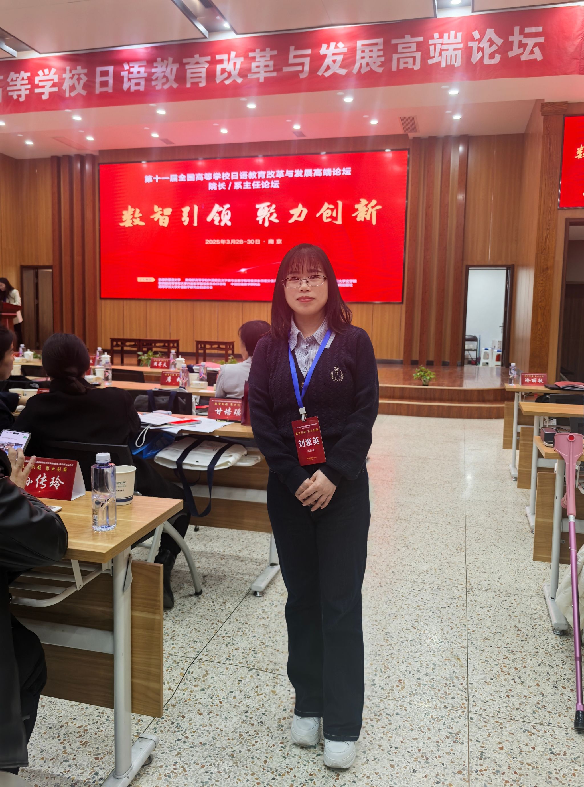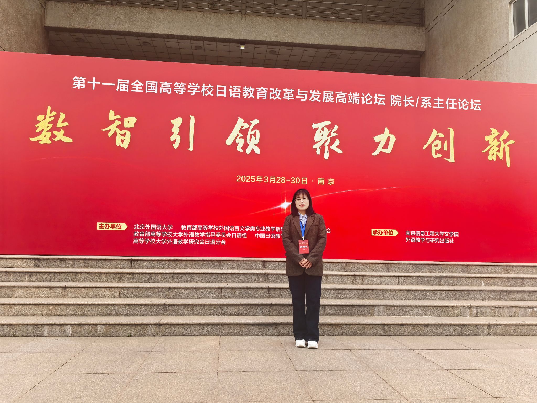本网讯(文图/刘紫英)3月28—30日,由北京外国语大学、教育部高等学校外国语言文学类专业教学指导委员会日语分委员会、教育部高等学校大学外语教学指导委员会日语组、中国日语教学研究会、高等学校大学外语教学研究会日语分会联合主办,南京信息工程大学、外语教学与研究出版社承办的第十一届全国高等学校日语教育改革与发展高端论坛(院长/系主任论坛)于南京召开。本届论坛以“数智引领聚力创新”为主题,旨在与全国日语学科同仁共商数智时代下日语专业及大学日语教学实践的改革方向,助力高等日语教育在专业优化浪潮中实现创新发展。300余位高等日语教育学界的专家学者、高校领导、学科负责人、骨干教师齐聚一堂,探索新时期下日语学科的高质量发展路径。我校外国语学院小语种系主任刘紫英参会,围绕“日语+专业”跨学科协同育人模式培养、数智时代下日语专业及大学日语教学的改革创新、学科交叉融合和日语教学的数字化转型等前沿议题与参会代表展开深入交流。